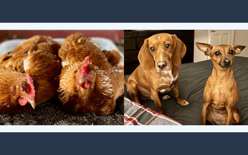 I love to laugh and play practical jokes. Most often I find as much joy in planning jokes as in carrying them out. I have become a pickleball fanatic and play 3-4 times a week. My husband and I love to cook and have people into our home. Most weekends we entertain. What I love most in life besides my husband and son are my two dogs Mac (Beagle) and Lou (Miniature Pincher). and our four chickens Rosie, Rita, Roxy and Ruby.